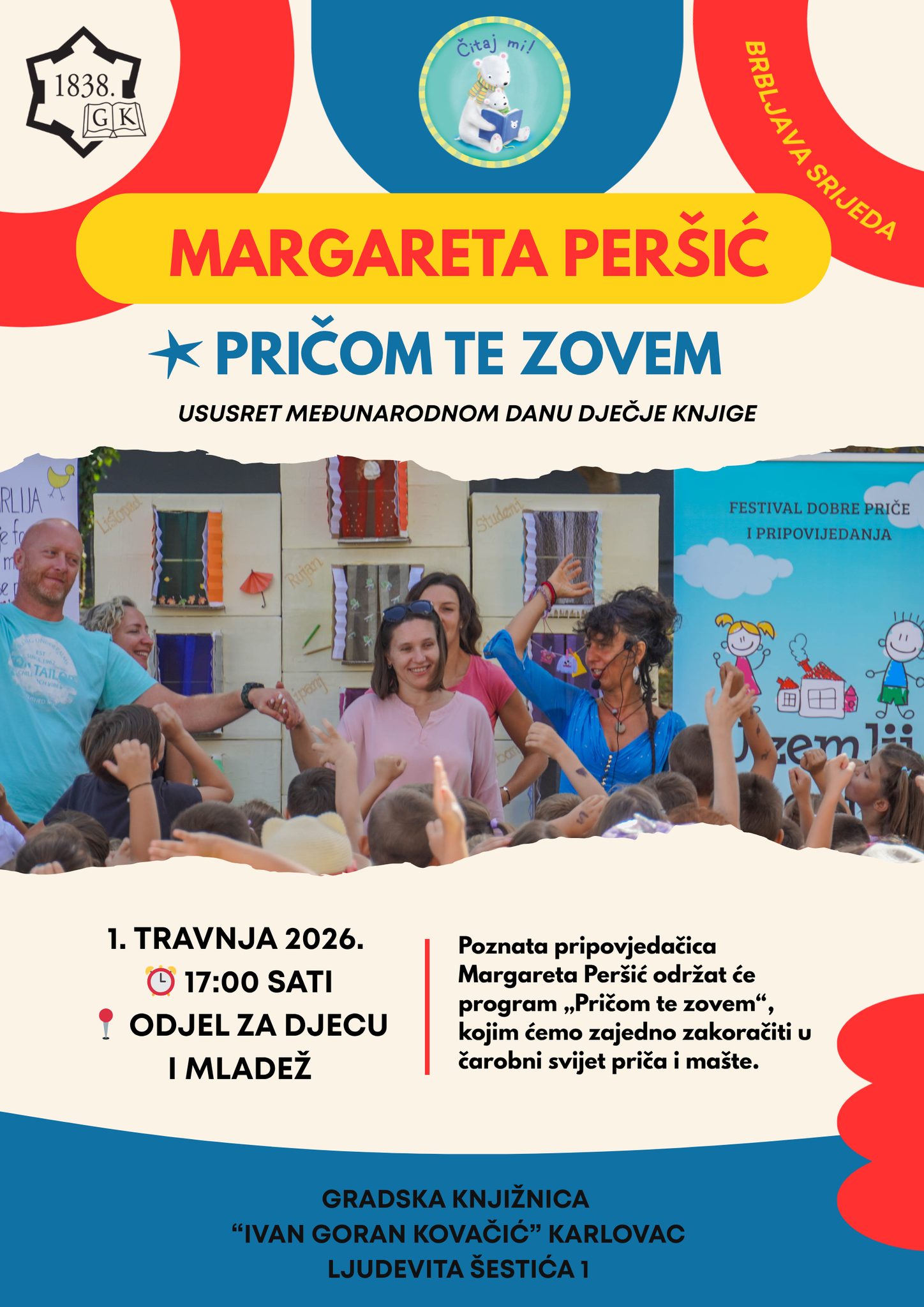 🎤 Poznata pripovjedačica Margareta Peršić održat će program „Pričom te zovem“, kojim ćemo zajedno zakoračiti u čarobni svijet priča i mašte.